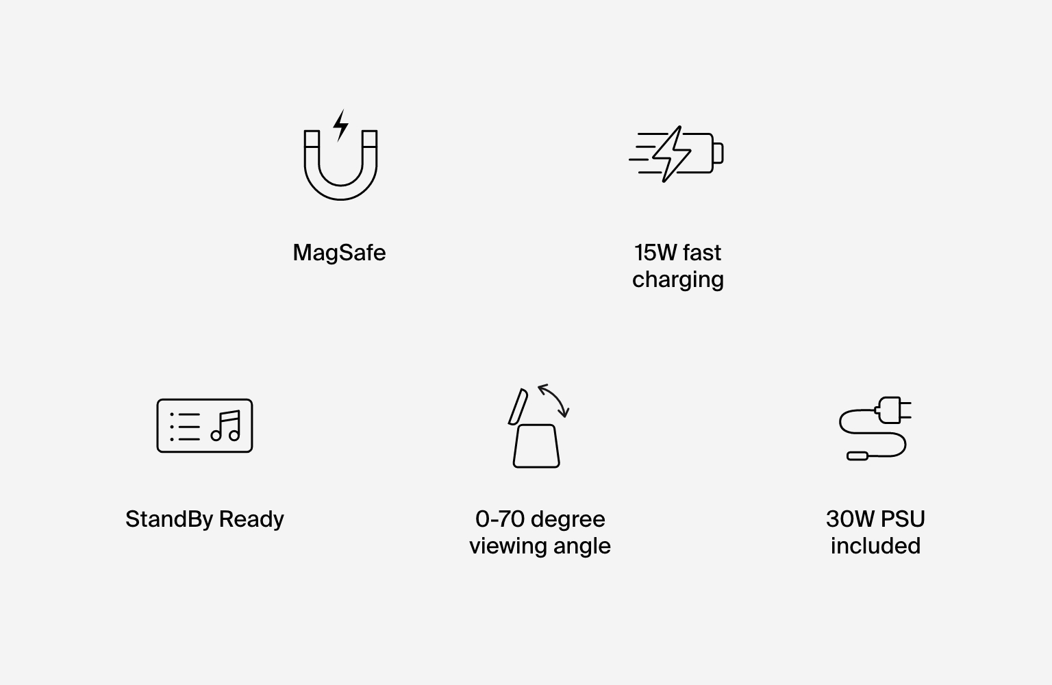 This ultra-convenient charging dock delivers 15W of fast wireless charging to your iPhone 12 and later, Apple Watch 4 and later, and many models of AirPods. Leveraging MagSafe technology, you can place your iPhone on the charging pad for a secure, aligned connection. It’s StandBy ready for you to take advantage of iPhone placement options.