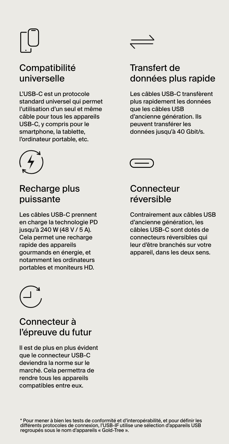 tests de sécurité et de qualité pour les produits USB-C.
