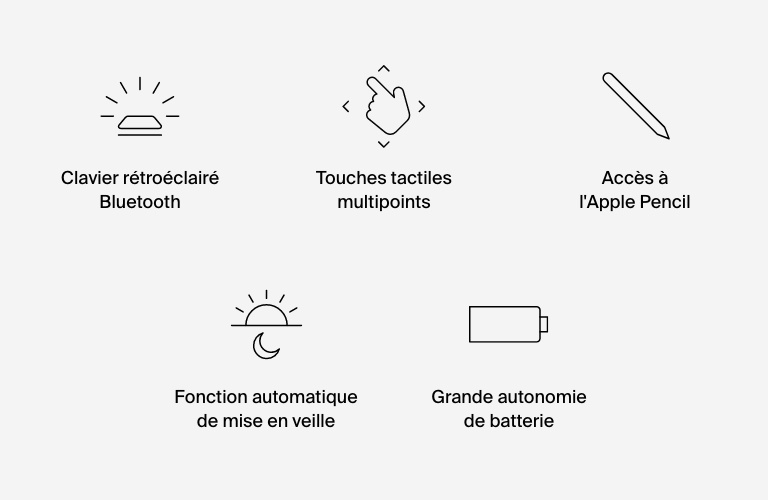 Conçu pour éviter de perdre votre Apple Pencil, cet étui clavier avec support magnétique n'obstrue pas le rangement magnétique de l'iPad, spécialement prévu pour garder votre Apple Pencil en sécurité après utilisation.