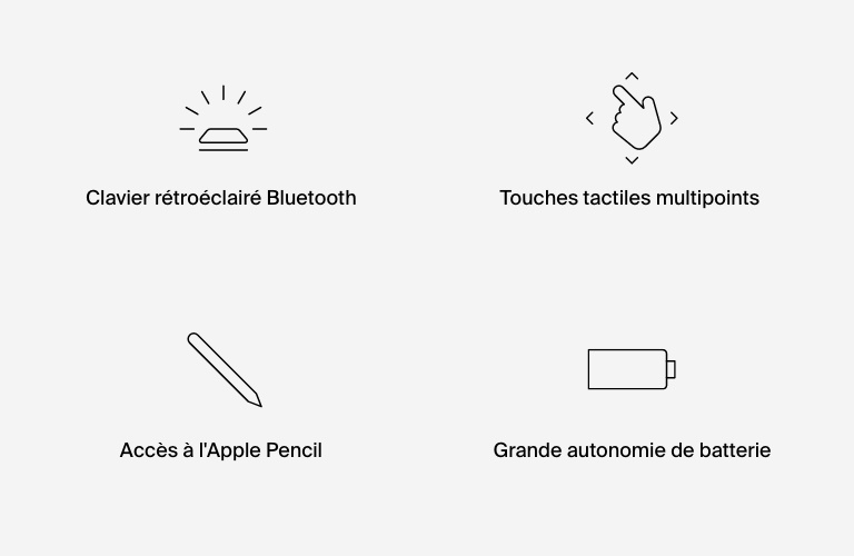 Avec notre étui clavier Everyday, transformez votre iPad en ordinateur portable tout en conservant les fonctions familières de votre Mac. Faites défiler et naviguez sur le pavé tactile aussi facilement que sur votre ordinateur.