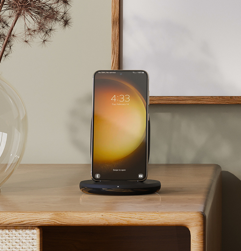 Désencombrez votre bureau ou votre dessus de comptoir en remplaçant les fils qui traînent par un pupitre de recharge pratique, et sans fil. Ce chargeur compact, tout en finesse, fournit une puissance de 15 W pour charger votre téléphone Apple ou Android.