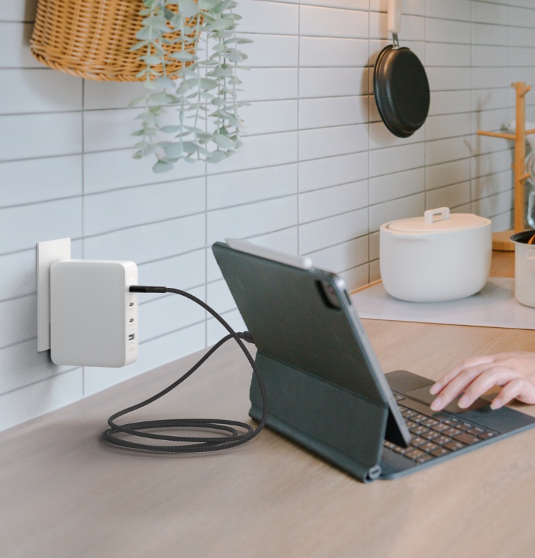 ** Avis de non-responsabilité concernant le chargement rapide : Durant nos essais internes, notre câble USB-C recharge un MacBook Pro 2021 14" de 0–50 % en 31 minutes. Les résultats réels varieront en fonction de différents facteurs, notamment l’âge de l’appareil, le modèle et l’environnement d’utilisation propre à chaque utilisateur.