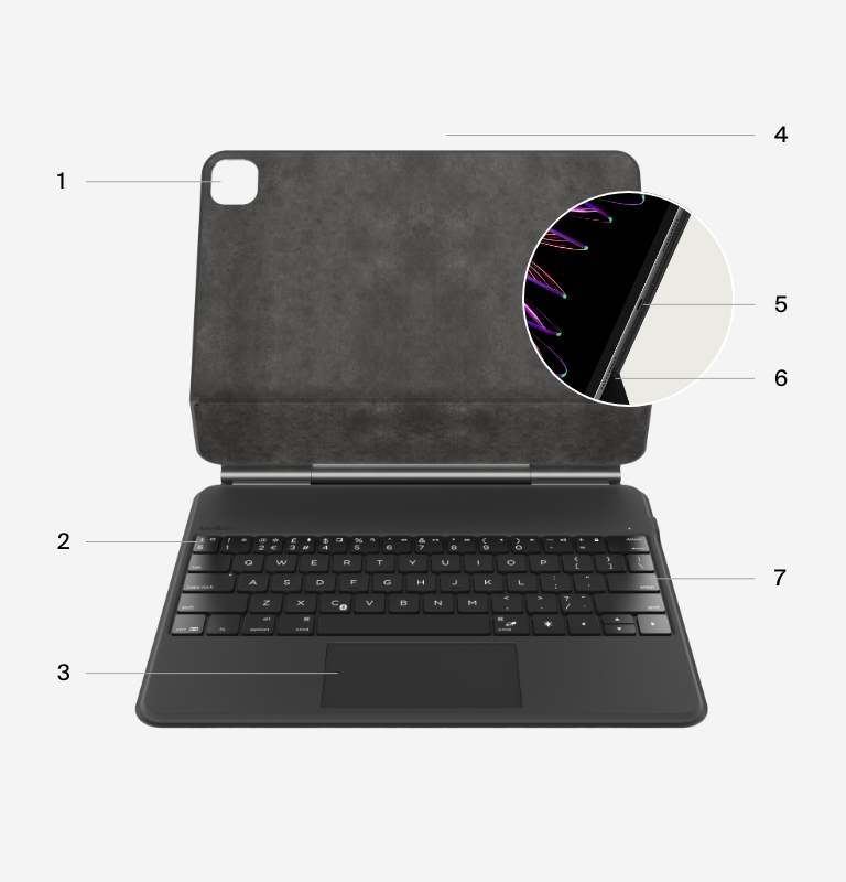 Hinweis: Laden Sie die Tastatur mit Hülle vor dem Gebrauch vollständig auf, um die besten Ergebnisse zu erzielen.