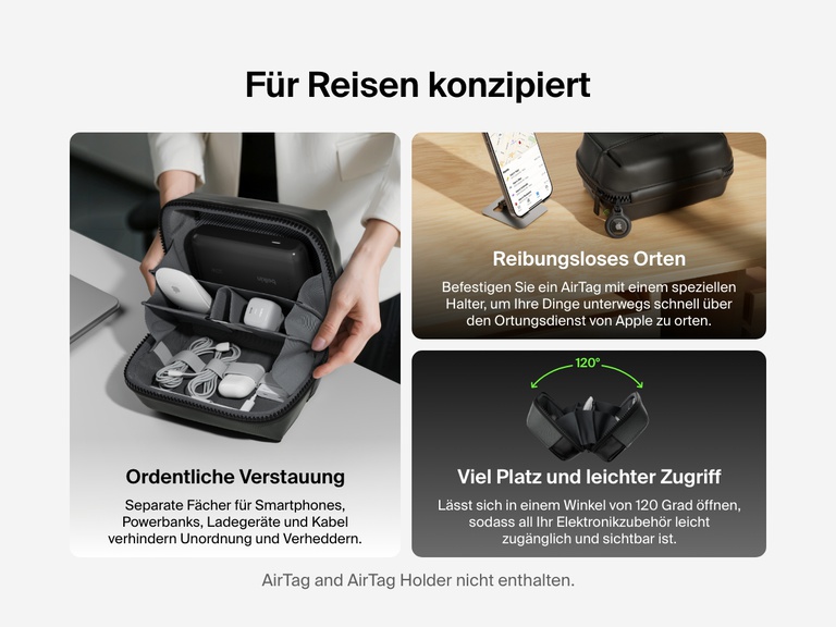 Dies ist Ihr neue Begleiter: Der Reise-Organizer für Elektronikzubehör. In dieser schlanken, stilvollen Tasche mit durchdachtem Design sind Ihre Elektronikartikel auf Reisen gut aufgehoben und leicht zugänglich. Eine Powerbank, ein großes Ladegerät, eine Maus und vieles mehr finden bequem darin Platz und machen diesen Organizer zum idealen Begleiter für technikaffine Reisende.
