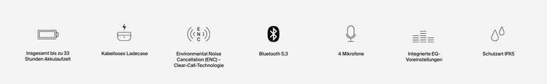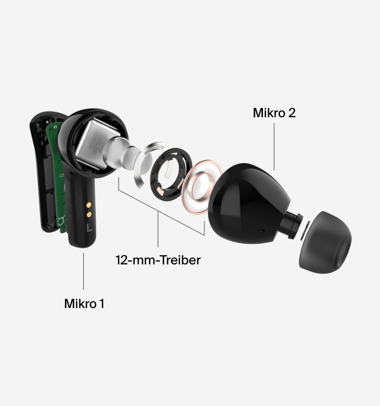 Dank der zwei Mikrofone in jedem Ohrhörer ist der Klang so gut, als würden Sie der Person, mit der Sie telefonieren, gegenüberstehen.