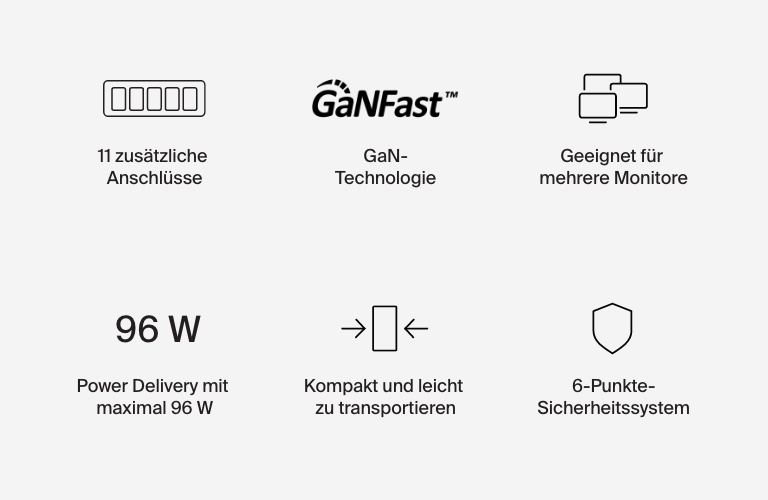 | 3 Monitore | 4K bei 60 Hz | 4K bei 60 Hz (gespiegelt) | / | 4K bei 30 Hz | 4K bei 60 Hz (gespiegelt) | / | 4K bei 30 Hz | 4K bei 60 Hz (gespiegelt) | / |
