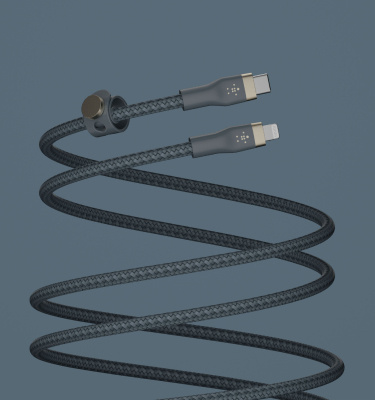 Customers can identify Belkin fast charging USB-C to USB-C and USB-C to Lightning cables from the Lightning icon mentioning "Fast Charge Compatible" or the small bubble mentioning "Fast Charge Ready" on the front of the packaging box.
