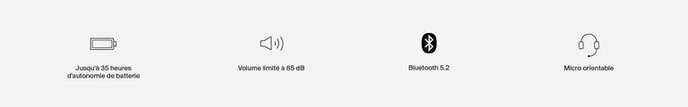 Casque audio sans fil, de haute qualité, confortable à porter et spécialement conçu pour les enfants. Il se recharge rapidement via son port USB-C. Il est doté d'une autonomie de 35 heures. Ce casque audio est équipé de la echnologie Safe Sound qui limite le volume sonore à 85 dB. Il est parfait pour l'apprentissage à distance, les voyages ou la lecture de vidéos en streaming.