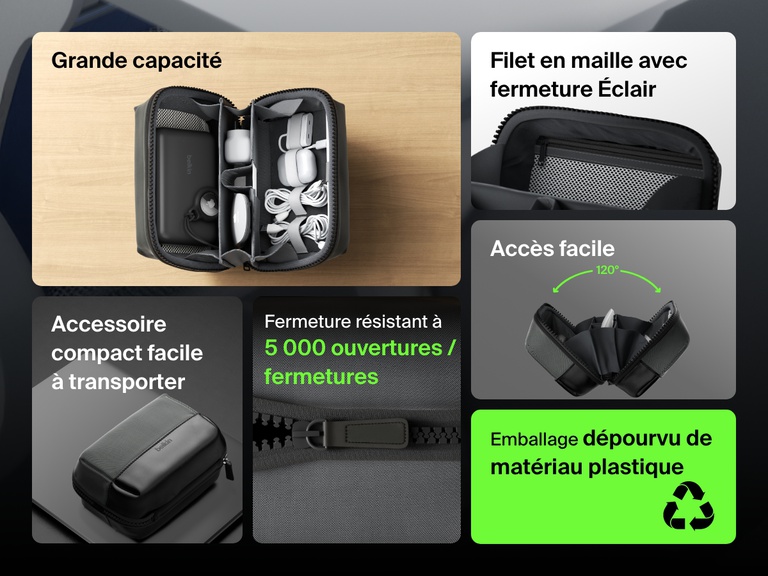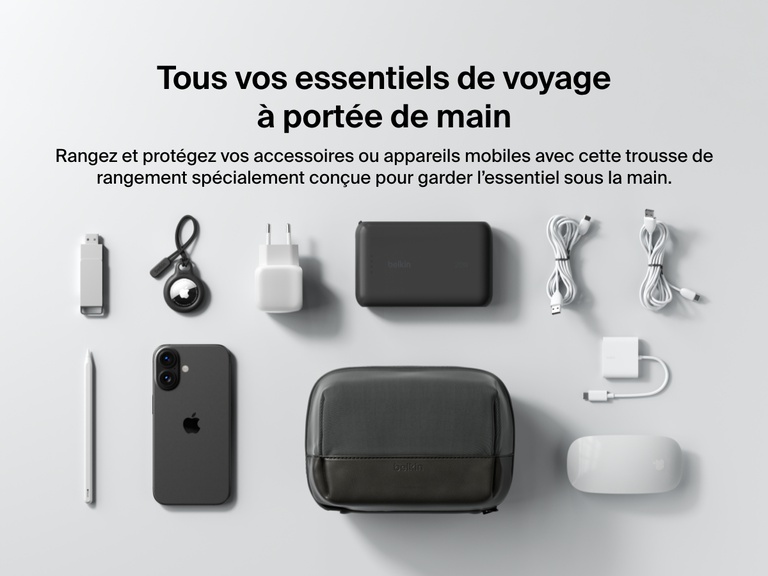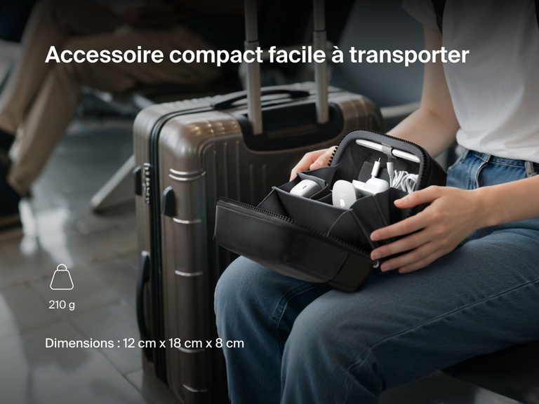 Découvrez votre nouvel accessoire indispensable : la trousse de rangement. Gardez vos accessoires soigneusement rangés et à portée de main avec cette trousse de rangement à la fois fine et élégante spécialement conçue pour les déplacements du quotidien. Ses compartiments de rangement dédiés (batterie externe, chargeur secteur, souris ou autre) en font le compagnon de route parfait pour les amateurs de technologie en déplacement.
