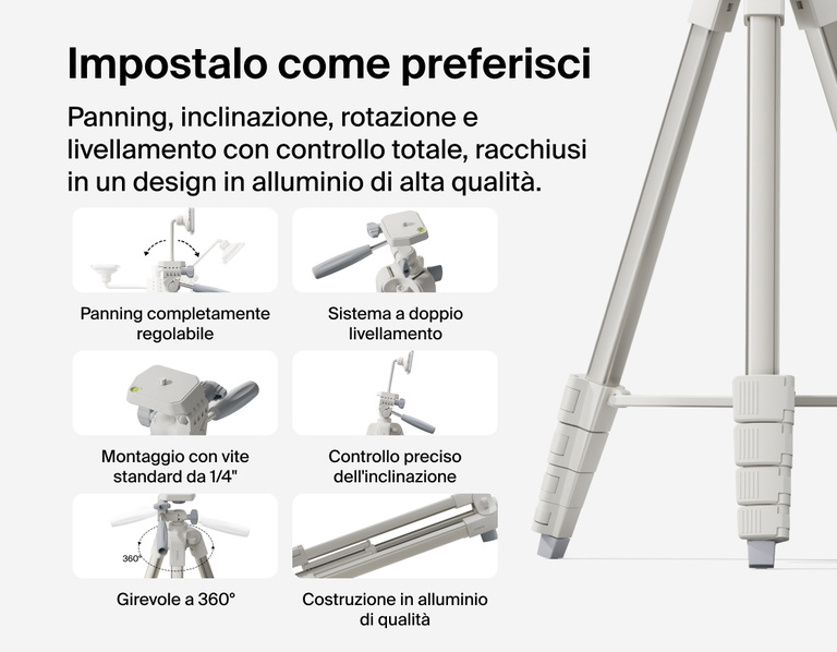 Non importa che tu sia un principiante alle prime armi o un esperto professionista, il kit di accessori per content creator Stage include tutto ciò di cui hai bisogno per scatenare la tua creatività e creare contenuti coinvolgenti. Il kit comprende un treppiede resistente, un supporto magnetico per telefono con angolazione regolabile e un paio di microfoni a clip indossabili per rendere ancora più entusiasmanti i tuoi video, vlog, podcast e altro ancora.