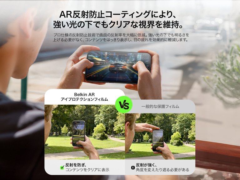 *社内テストによると、画面保護フィルムは、従来の強化ガラス画面保護フィルムと比較して、平均で最大62%高い強度を実現しています。