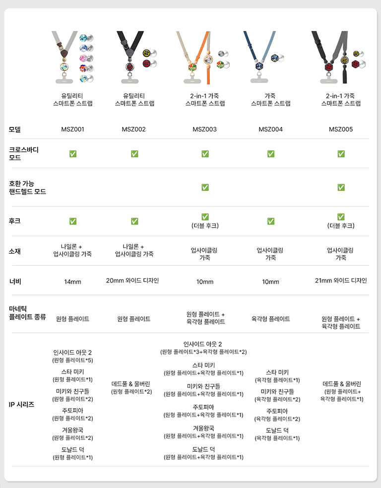 손을 자유롭게 사용하고, 양면 & 교체형 마그네틱 플레이트로 언제든지 원하는 스타일로 스트랩을 커스터마이징하세요.새롭게 선보이는 버클 디자인으로 휴대폰 스트랩을 빠르게 고정하고 쉽게 탈착할 수 있어, 다양한 상황에서 유연하게 활용할 수 있습니다.목에 걸거나 크로스바디로 착용하여 이동 중에도 두 손을 자유롭게 사용할 수 있습니다.