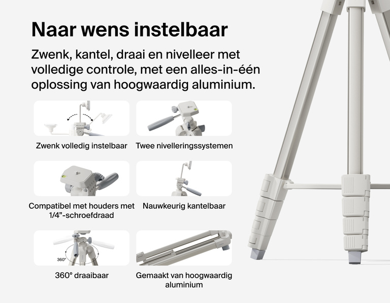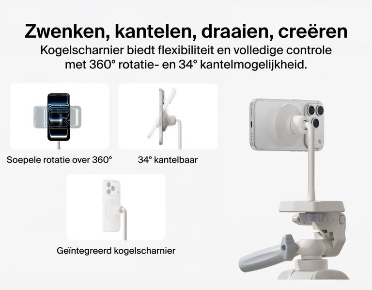 Of je nu een beginner bent of een doorgewinterde professional, de Stage creator-bundel bevat alles wat je nodig hebt om je creativiteit te ontketenen en boeiende content te maken. De bundel bestaat uit een duurzaam statief, een magnetische telefoonhouder die draaibaar en kantelbaar is en een set clip-on microfoons om je video’s, vlogs, podcasts en meer naar een hoger niveau te tillen.