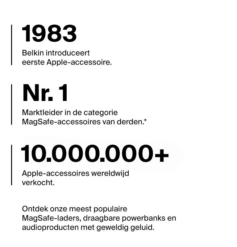 Belkin sloot in de jaren 1980 als eerste met een kabel een Apple llc-computer aan op een parallelle printer. Nog steeds profileren we ons als innovator met accessoires die je optimaal laten profiteren van je iPhone 15.