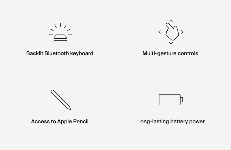 The compact design adds a Bluetooth keyboard and protective case. Thoughtfully engineered for you to access your needed ports and pencil, the premium exterior protects your tablet, while a soft anti-slip interior protects your screen.