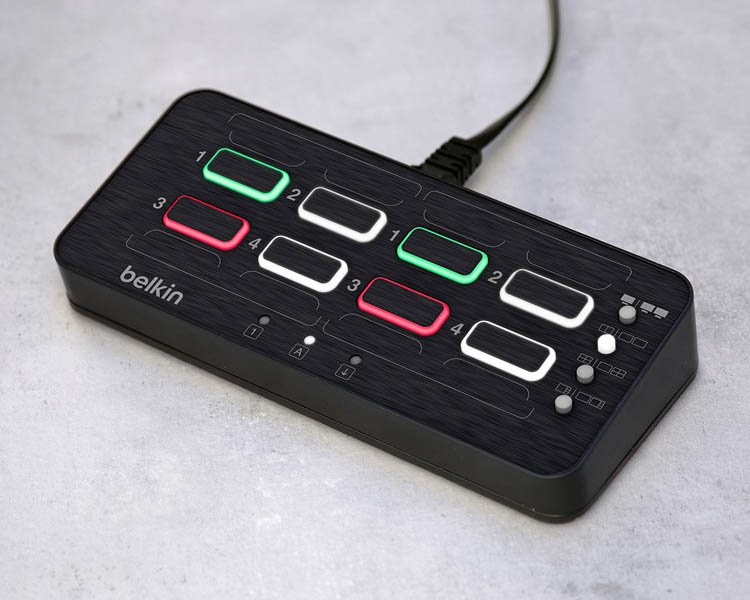 Operators have clear access to the MultiClave Secure KVM at the desktop with this remote control. A 4-port remote control with colorized LED buttons pairs with Belkin’s DisplayPort MultiClave Secure KVM Series.