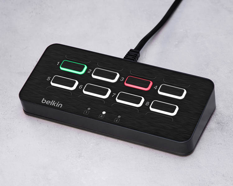 This remote control for Secure KVMs gives operators easy desktop access to the SKVM. An 8-port remote control with colorized LED buttons pairs with Belkin’s Universal 2nd Generation, Universal DisplayPort and Modular (with available adapter) SKVM/SKMs.