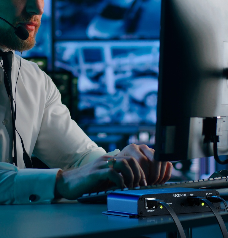 With minimal infrastructure cost (one receiver/transceiver set per monitor), you’ll receive rapid, reliably wired, uninterrupted connections. Leveraging our SKVM expertise, Belkin developed a “no client” solution that provides the ultimate in desktop security with the added benefit of datacenter-located administration of the computing assets.